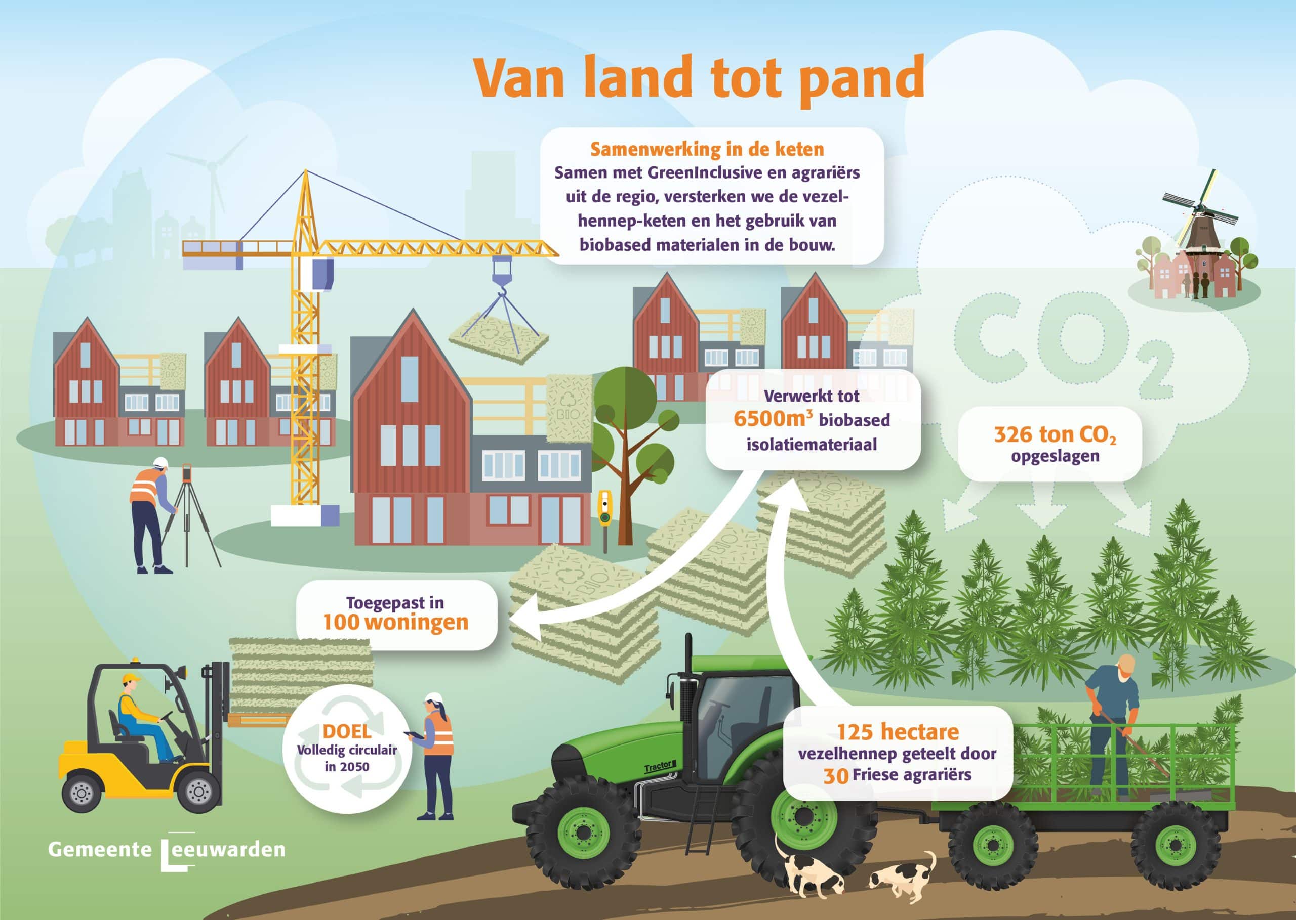 Gisteren overhandigde het Friese bedrijf GreenInclusive de eerste agro-based CO₂-certificaten aan de gemeente Leeuwarden. Door de aankoop van deze certificaten konden agrariërs vezelhennep telen – een gewas dat CO₂ op natuurlijke wijze opslaat en dient als grondstof voor biobased isolatiemateriaal. Ook werden de eerste resultaten van deze duurzame lokale keten gepresenteerd.