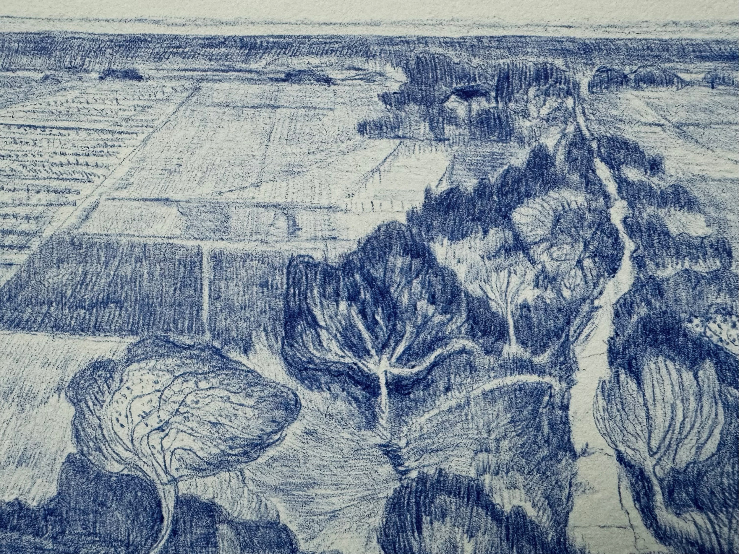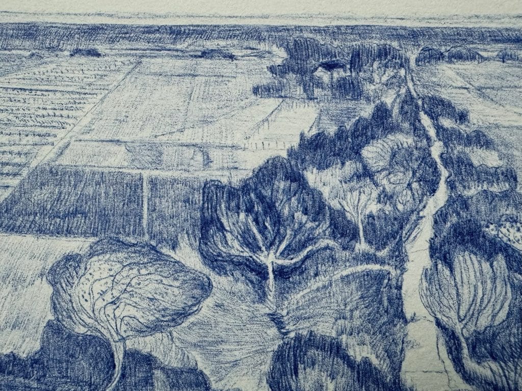 Van de Wouden vind ik het mooi dat het zo’n aangenaam rommeltje is. Vanuit de trein, maar ook vanaf je racefiets, mits je een flink vaartje hebt, weet je nooit precies waar je nu eigenlijk naar kijkt. Er zijn altijd struiken, rietkragen en schuurtjes die het uitzicht bemoeilijken. Is dat daarginds een natuurlijke plas water, of een aangelegde drenkpoel? Zie ik achter dat vervallen schuurtje een verroest landbouwwerktuig, of het karkas van een Opel Commodore uit 1971? En ligt daar aan de achterkant van een erf een rottend dood schaap, of is het een crèmekleurig afdekzeil, met daaronder een handeltje dat zich aan het oog van de fiscus onttrekt? Het is onzeker en spannend en zo probeer ik De Wouden ook te schilderen.