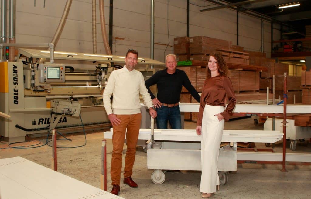 Een van de laatste innovaties is een CNC-machine die met vier CNC-motoren tegelijk werkt. Daarmee worden bewerkingen veel sneller en preciezer uitgevoerd. Job: “Wat je vroeger met de duimstok en handmatig frezen deed, gaat nu digitaal en volautomatisch. Dat verkort de doorlooptijd enorm en garandeert maatvastheid. Toch blijft hout een natuurproduct: onze mensen ‘lezen’ nog steeds het hout en combineren die kennis met de nieuwste techniek. Dat maakt ons sterk.”