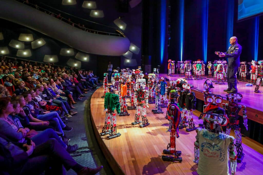 Na afloop hebben de leerlingen van de Koningin Wilhelminaschool uit Hollum, De Bron uit Dokkum en Dr. J. Botkeschool uit Damwoude André Kuipers exclusief voor hen alleen. Ze willen van alles van hem weten. Kun je verdwalen in de ruimte? Waarom is de lucht zo blauw? Is er leven buiten de aarde? Moet je alles weten om astronaut te kunnen worden? Kuipers geeft geduldig en enthousiast antwoord en besluit met een boodschap. ,,Robots zullen ons leven een stuk fijner maken omdat ze saaie en gevaarlijke dingen van ons gaan overnemen. Daarom ben ik niet bang voor robots. Maar, we moeten wel zorgen dat robots in goede handen blijven. Met een steen kun je een huis bouwen, maar ook iemand een gat in zijn hoofd slaan. Daarom is het belangrijk dat wij op aarde werken aan democratie, grondrechten en mensenrechten. Dat moet ervoor zorgen dat robots in goede handen blijven.’’