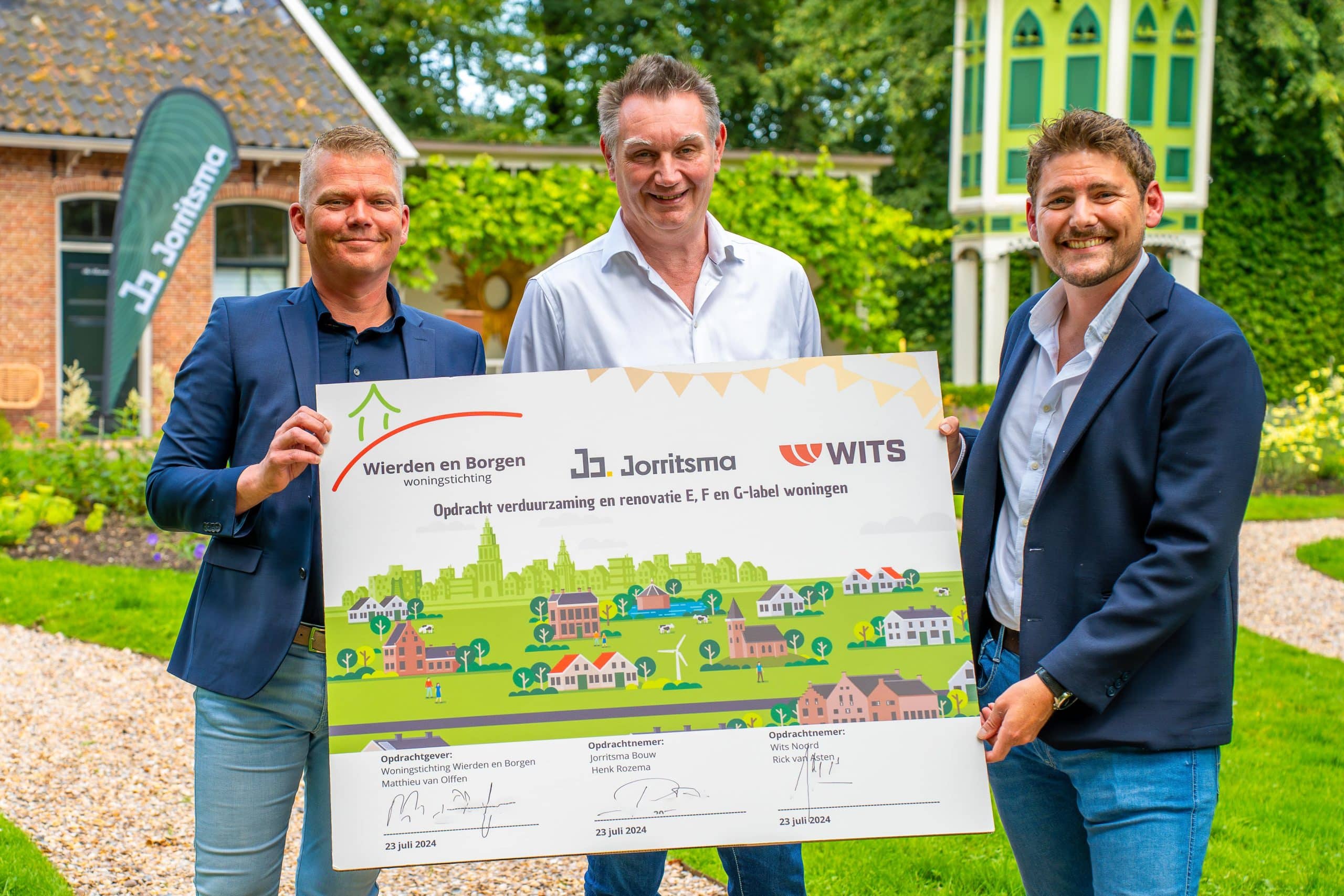 Gisteren ondertekenden woningstichting Wierden en Borgen, Jorritsma Bouw en Wits Noord een bouwteamcontract voor het verduurzamen van 670 sociale huurwoningen. Met deze verduurzamingsslag gaat 10% van het woningbezit van label E, F, of G naar minimaal A.